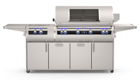 When only the best will do, our flagship Fire Magic® Echelon Diamond combines the ultimate in performance, beauty and innovation. With sleek lines highlighted by a modern black glass control panel including a digital touchscreen operation with blue tooth remote capability. Cast stainless steel burners power an innovative heat distribution system topped with patented Diamond Sear cooking grids to truly elevate the outdoor cooking experience. The Echelon Diamond defines luxury in grilling.